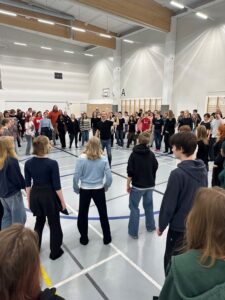 Torstaina koko OSYK pääsi tutustumaan kansanmusiikkiin tanssitaiteilija ja tanssin opettaja sekä kansanmusiikin taitajan Petri Kauppisen ohjaamana. Kauppinen opasti osykilaisia muutamiin askelkuvioihin ja tanssitti lukiolaisia ja opettajia Luovin liikuntasalissa.