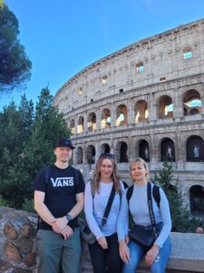 Matkamme alkoi kylmänä marraskuisena aamuyönä, mutta väsymys kaikkosi, kun saavuimme aurinkoiseen ja lämpimään (+19 astetta) Roomaan. Pienten vastoinkäymisten jälkeen pääsimme lopulta Rooman keskustaan ja vierailimme Colosseumilla ja Forum Romanumilla. Historiallinen ja kaunis Rooma teki meihin suuren vaikutuksen nähtävyyksineen ja pienine katukahviloineen. Illalla kuitenkin piti astua junaan ja aloittaa matka kohti koulutuskaupunkia, Bolognaa.